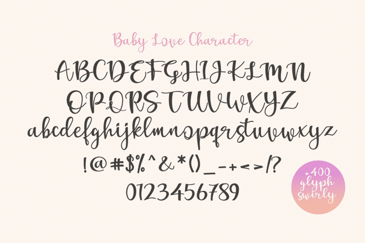 Baby Love Premium the newest Modern Calligraphy love theme that you can get now! With updated Swirly Love alternates models with special glyphs that have been given a combination of fantasy and handwritten ink. This font will look beautiful on all designs, New Year designs, Weddings, branding materials, blog titles, quotes and invitations, business cards.
