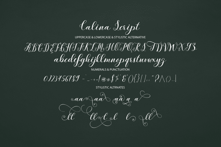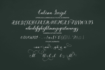 Kalina Script Calligraphy is built with OpenType features and includes start and end swashes, alternate character swash for most lowercase letters, numbers, punctuation marks, alternatives, ligatures and also supports other languages 🙂