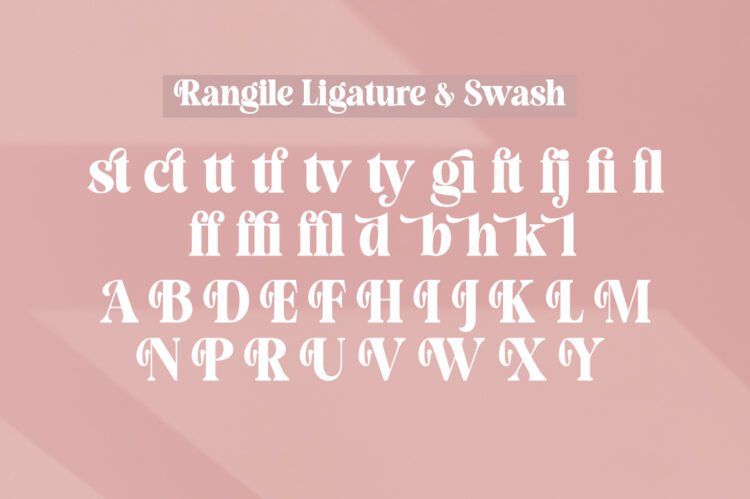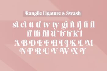 Rangile is built with OpenType features and includes initial and final language styles, alternative characters for most lowercase letters, numbers, punctuation marks, alternatives, ligatures, and also supports other languages.