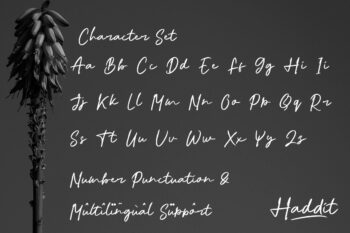 Haddit features OpenType stylistic alternates, ligatures and International support for most Western Languages is included. To enable the OpenType Stylistic alternates, you need a program that supports OpenType features such as Adobe Illustrator CS, Adobe Indesign & CorelDraw X6-X7, Microsoft Word 2010 or later versions.
