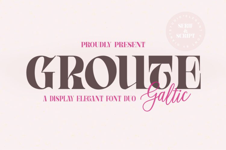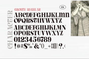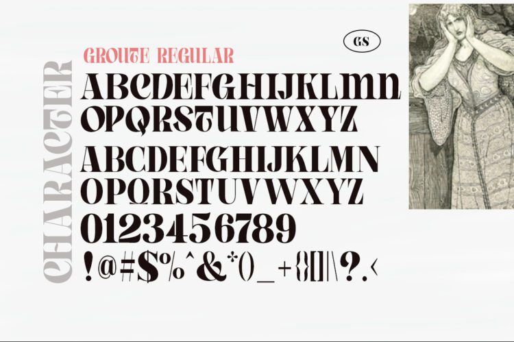 Groute Font Elegant serif specially designed uppercase letters in creative moods and perfect shapes, inspired by the bold, natural look of serifs that are so beautiful for today’s fashion. bold, balanced and varied, born for luxury and beauty. including uppercase letters, numbers, and various punctuation marks